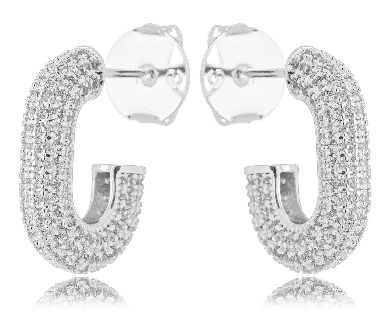 São básicas, mas fundamentais!! Argola no banho de ródio branco cravejada mini Zircôna cristal.