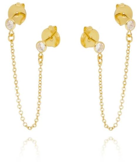 Kit com dois brincos pontos de luz com corrente delicada, disponível no banho de ouro amarelo 18K. Peso do par: 2,2 grs. Comprimento: 9 cm Diâmetro do brinco: 4 mm