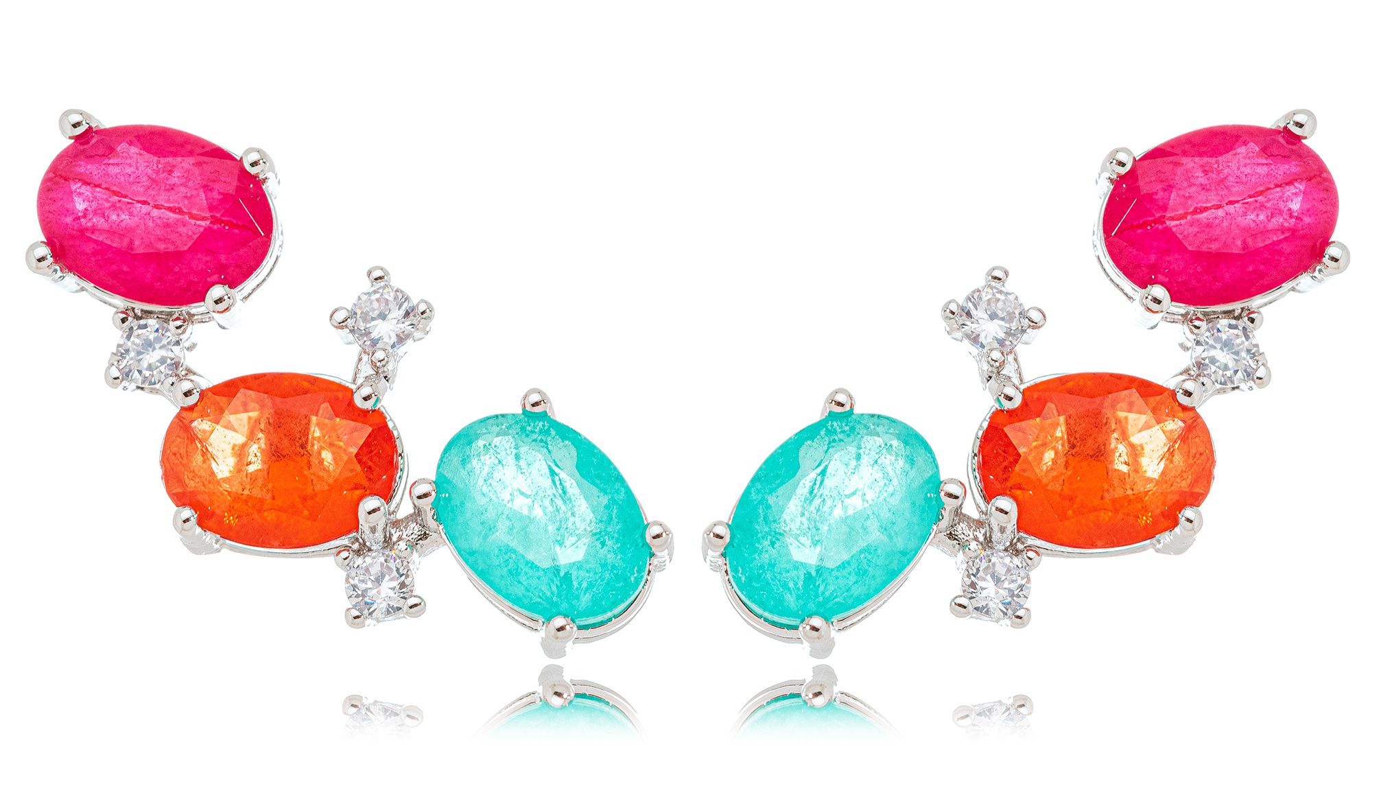 Esse ear cuff, banhado no ródio branco e cristais, é um arraso! Bem alegre para você fechar o ano com o astral la em cima.