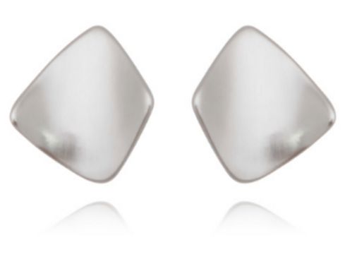 Brinco fosco com formato de losango assimétrico e curvatura lateral, disponível no banho de ródio branco 8K. Peso do par: 7 grs. Comprimento: 2,3 cm Largura: 2,1 cm