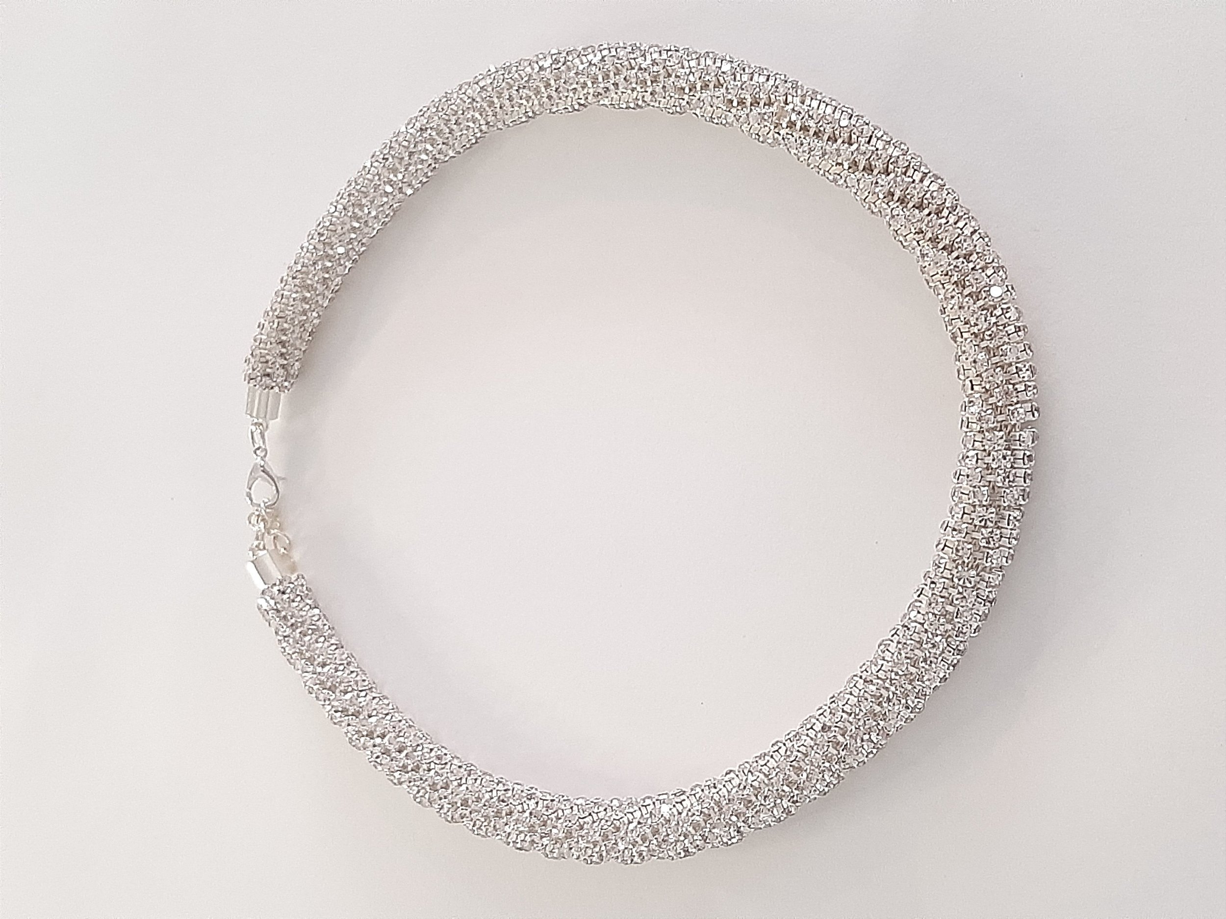 Colar Strass Prata, com muito brilho, fica justo ao corpo, excelente caimento.