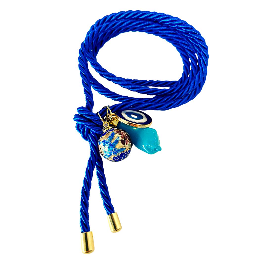 Essa peça já vem com 2 pingentes (olho grego e figa)