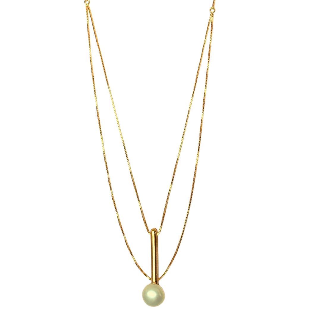 COLAR, COM BANHO DE OURO AMARELO 18K, COM BASTÃO DOURADO E PÉROLA