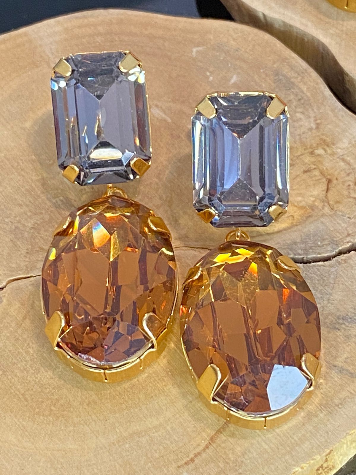 BRINCO CHATON REDONDO ÂMBAR E DOURADO
