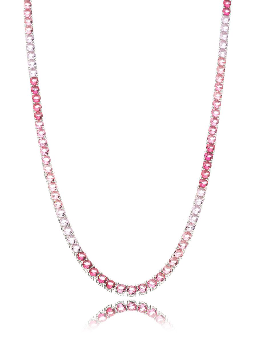 Essa riviera é uma jóia! Feita com Quartzo rosa e banhada no ródio branco.